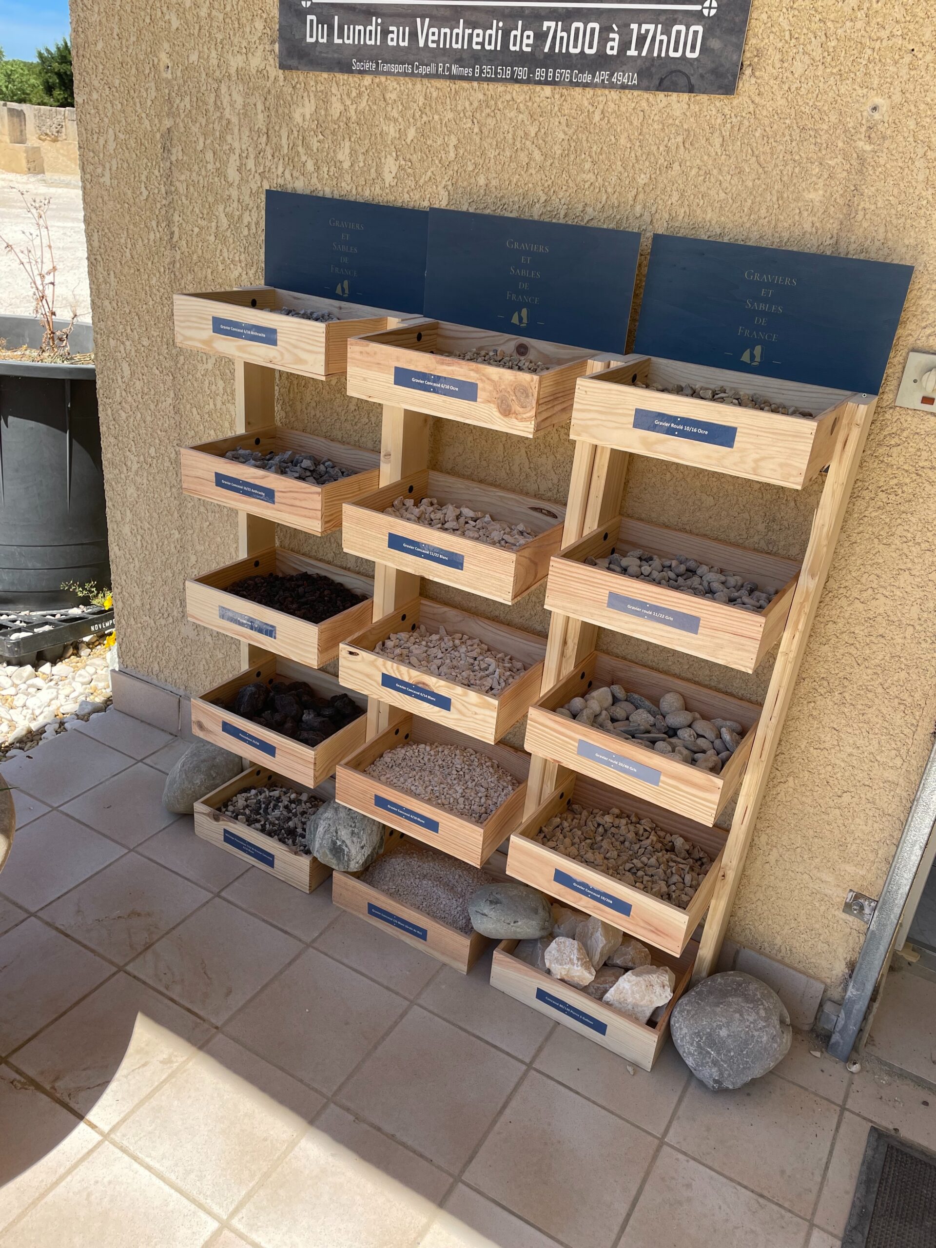 Un présentoir à été installé prés de notre accueil pour plus de confort lors de votre recherche de gravier.